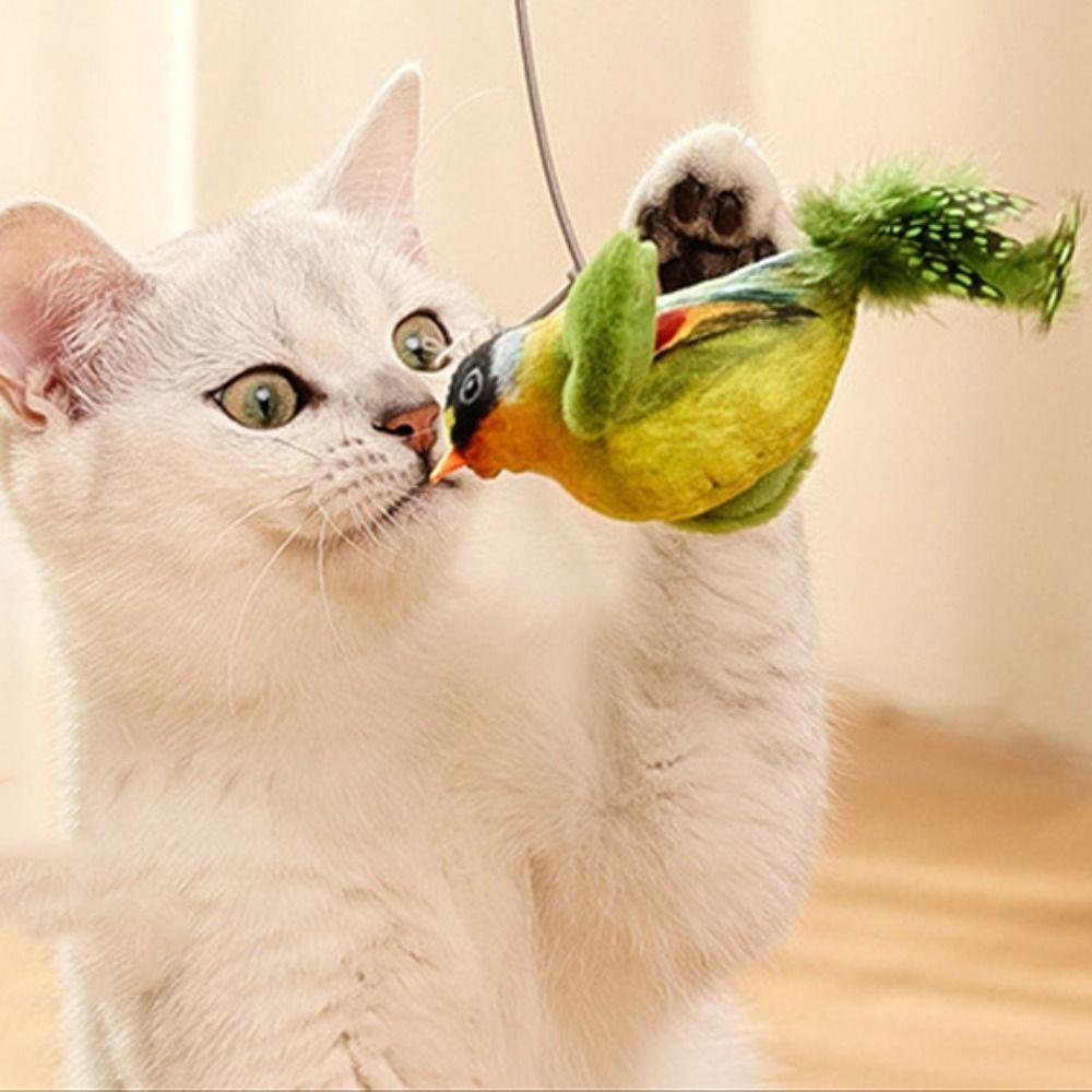 Скрипучая Имитация Птицы Игрушки для Кошек Чирикающая Плюшевая Игрушка-Птица Интерактивная Игрушка для Питомца Снимает Скуку