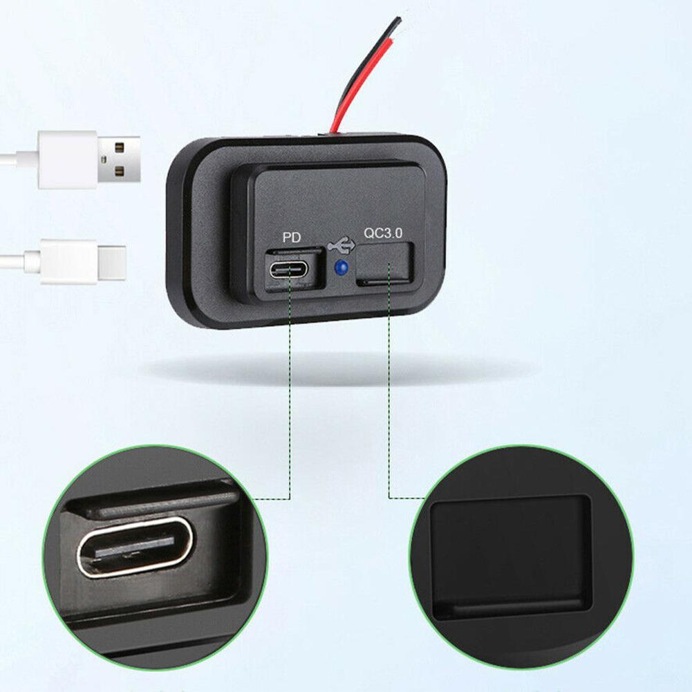 Автомобильное зарядное устройство для телефона PD Type C USB-порт Автомобильная розетка Разъем питания Панельный монтаж Водонепроницаемый 12-24В