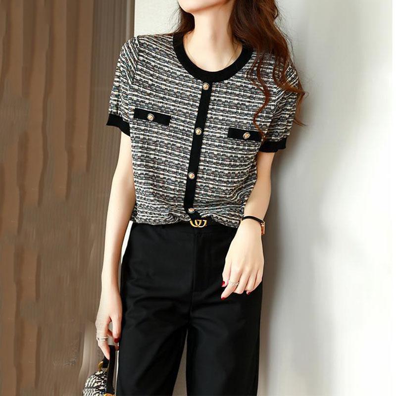 Элегантные Модные Трикотажные Топы с Коротким Рукавом и Круглым Вырезом, Универсальные Летние Пуловеры на Пуговицах для Повседневной Носки, Женская Одежда — купить товар онлайн с бесплатной доставкой по всему миру!