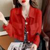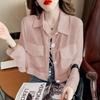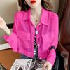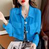 Уличная мода Карманы Блузка Лето Новая Однотонная Все-сочетаемая Отложной воротник Повседневная Корейская Однобортная Прямая Рубашка