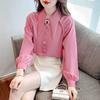 Весна Осень Повседневная Элегантная Рубашка с Лацканами Женская Одежда Однотонная Модная Отделка Бисером Бриллианты Корейская Однобортная Блузка