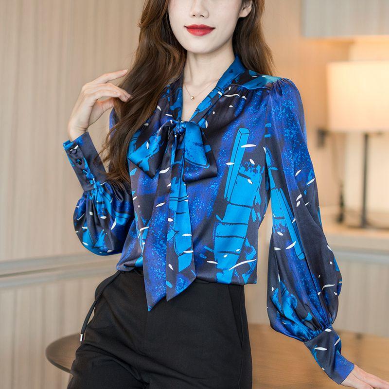 Стильная элегантная рубашка с V-образным вырезом и завязками-бантами 2023, одежда для офисной леди, весенняя, с длинным рукавом, женская одежда, однобортная корейская блузка