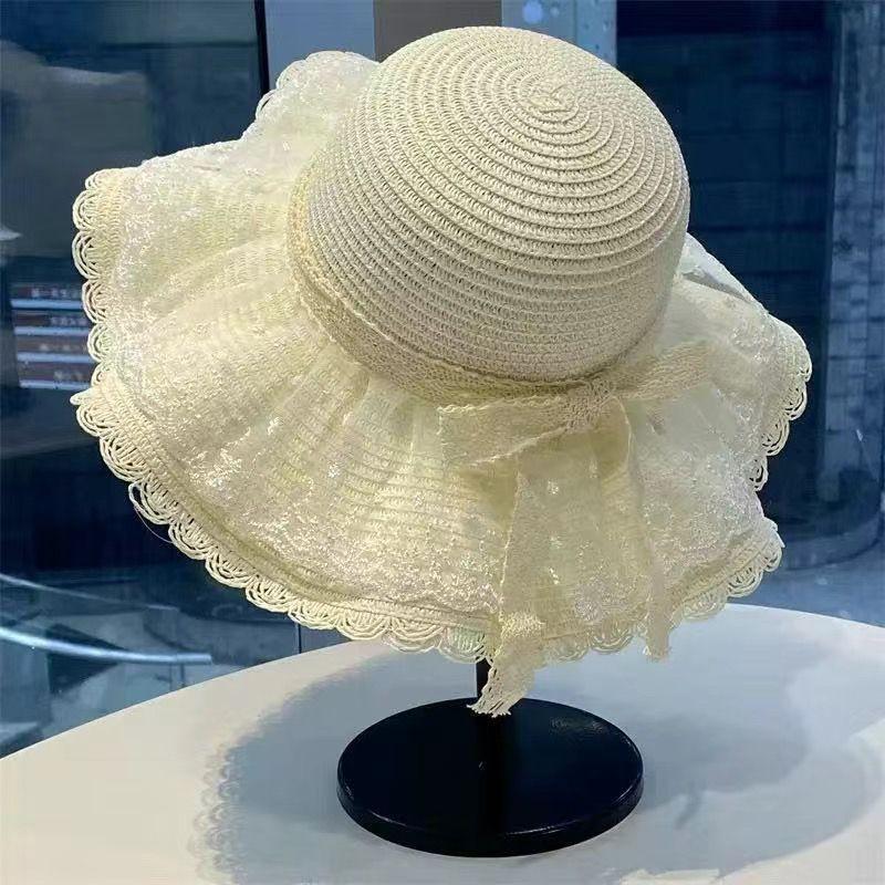 Летняя пляжная уличная соломенная шляпа с кружевным бантом, шляпа от солнца и для защиты от солнца, устойчивая к УФ-излучению шляпа от солнца для детей