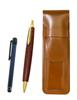Moss green grained leather pen case with metal touch blue and brown wooden barrel retro ballpoint pen set stick, SASMG-ALL-HS48S-2 2-pack