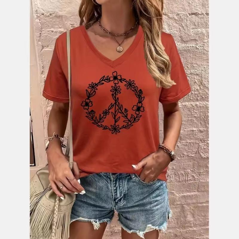 Летняя женская футболка с V-образным вырезом и 3D-принтом с символом мира, повседневная, с коротким рукавом, женская одежда больших размеров, модные уличные женские футболки — купить товар онлайн с бесплатной доставкой по всему миру!