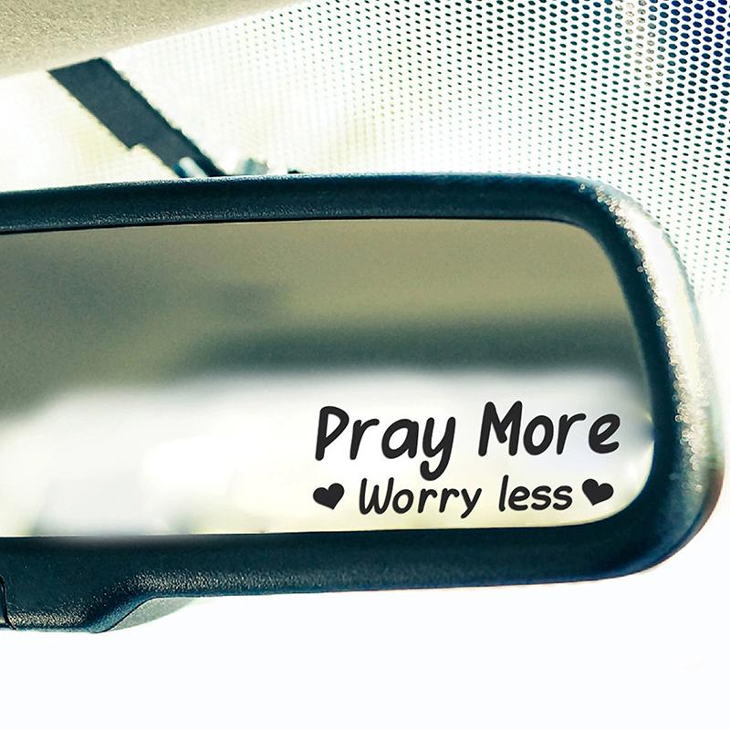 Молись Меньше Беспокойся Зеркальная Наклейка, Наклейки на Автомобиль для Женщин, Зеркальная Наклейка Вера, Милая Виниловая Наклейка, Христианская Наклейка на Зеркало Автомобиля, Религиозная