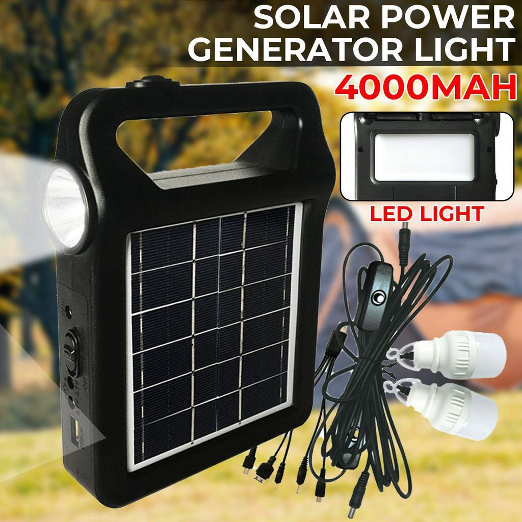 Комплект системы солнечного генератора 4000 мАч USB Солнечное зарядное устройство Аварийный свет с 4 светодиодными лампами 4 головки USB Кабель для зарядки для кемпинга 2 Вт/6 В