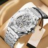 Модные мужские механические часы с большим циферблатом, автоматические, из нержавеющей стали, деловые, для платья, наручные для мужчин