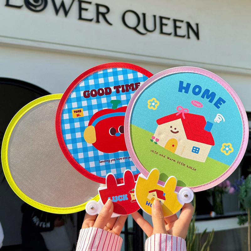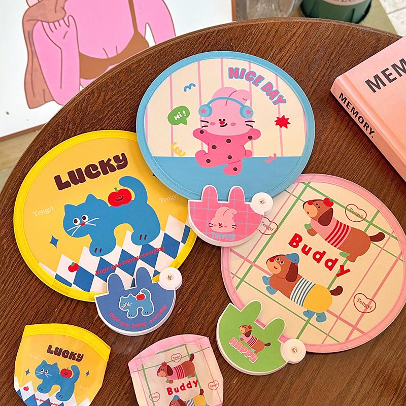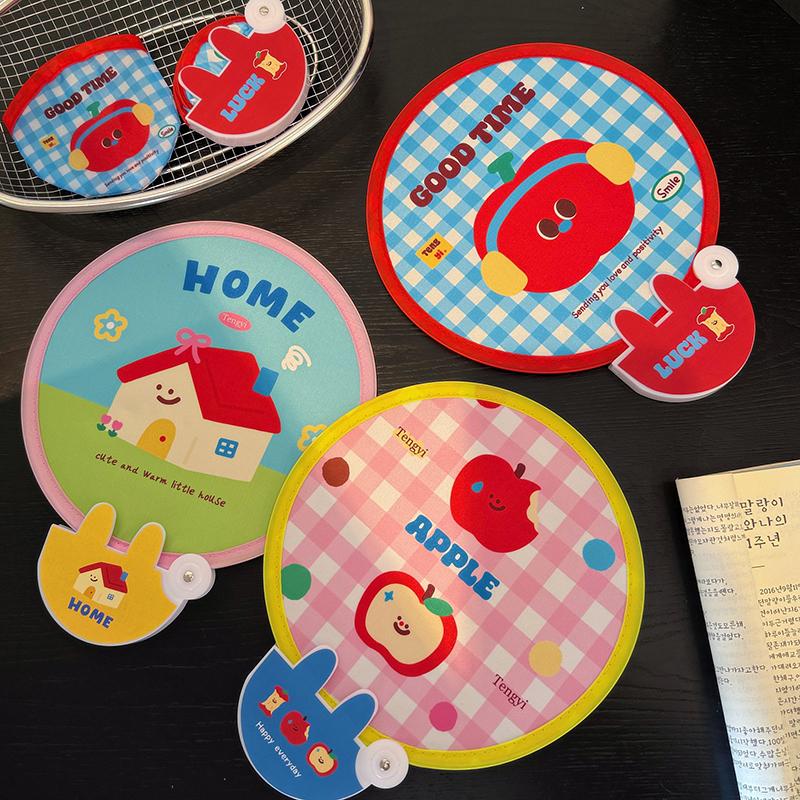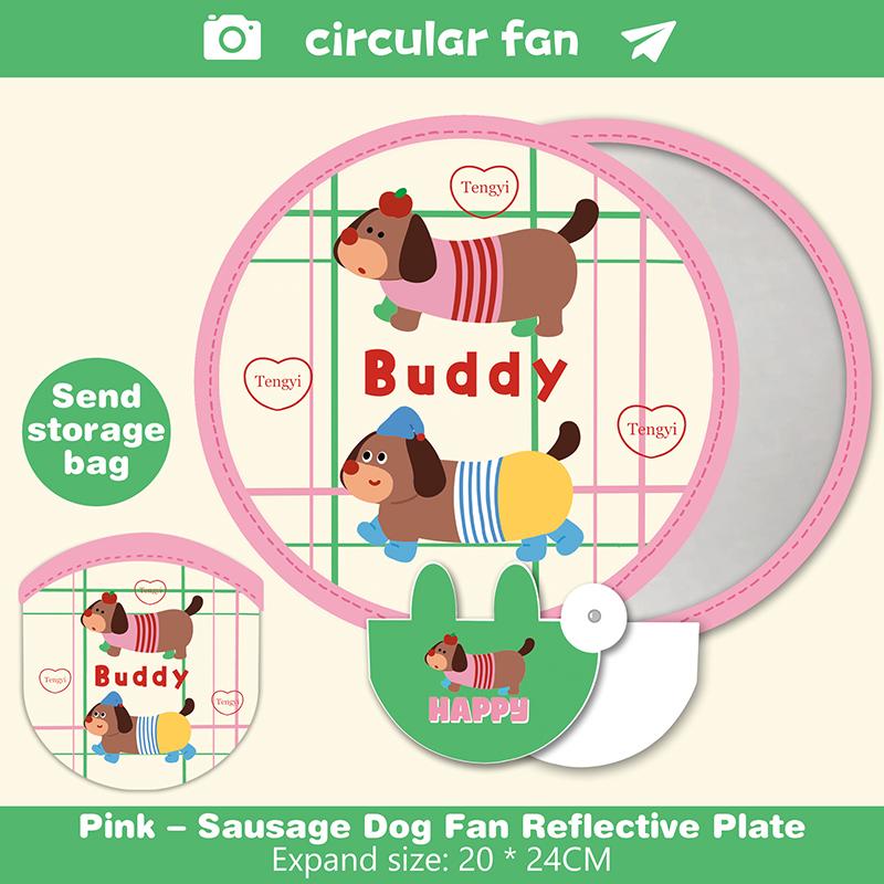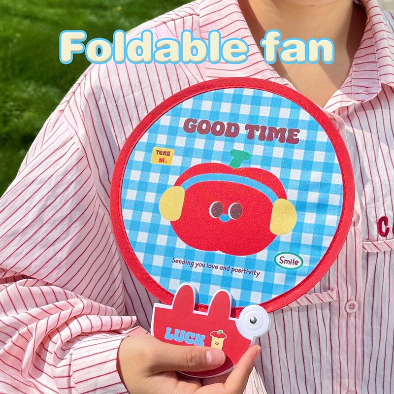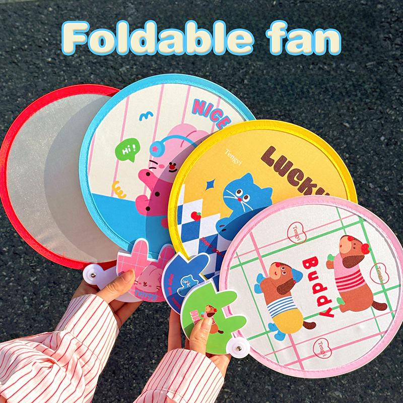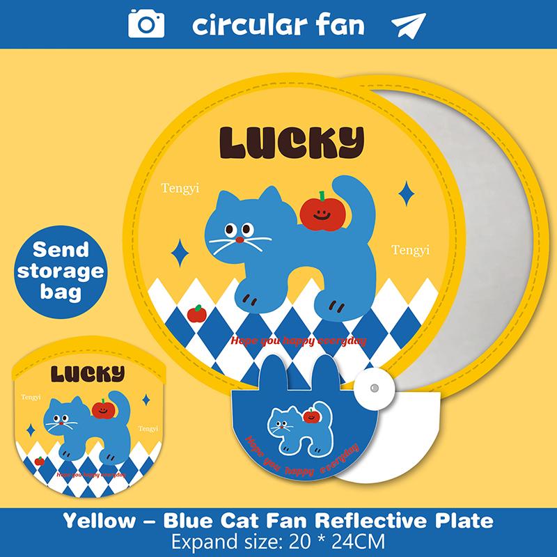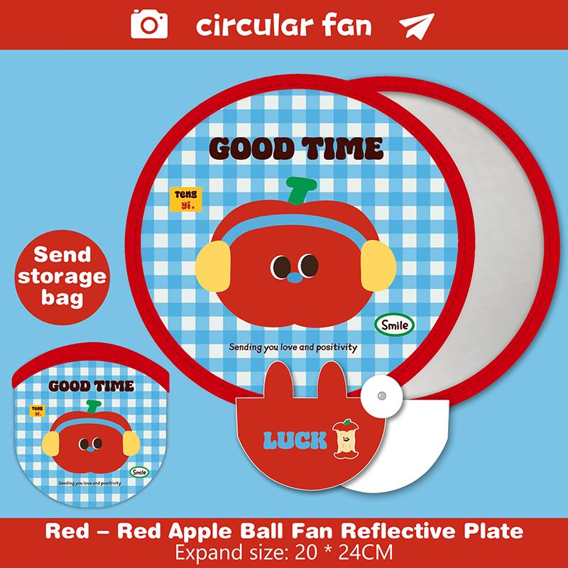 Мультяшный Милый Складной Веер для Группы Уличная Фотография Светоотражающая Пластина Мини Круглый Удобный Карманный Веер Портативный Складной Веер
