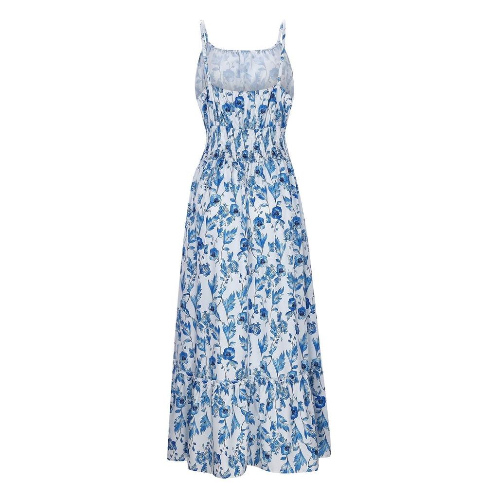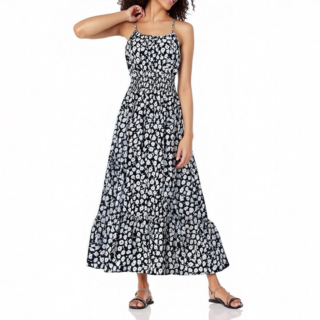 Женское летнее платье макси без рукавов с цветочным принтом на тонких бретельках, пляжное длинное платье в стиле бохо, пляжная одежда для отпуска