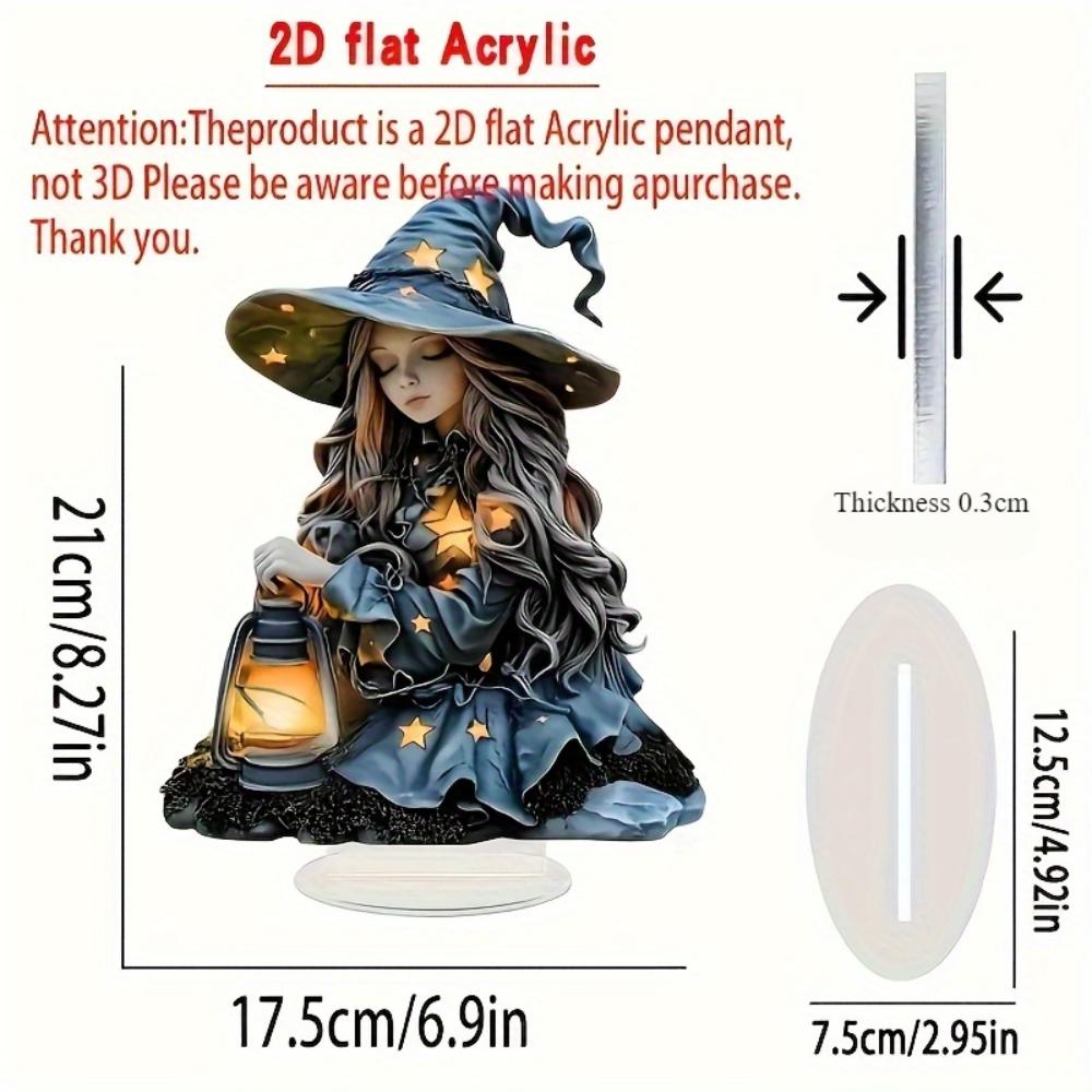 2D плоская акриловая табличка с ведьмой для украшения, настольное украшение, подходит для гостиной, спальни, праздничные подарки на Рождество, идеально подходит для Дня благодарения, Хэллоуина