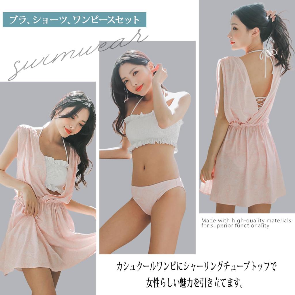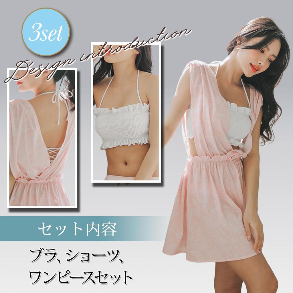 Размер S [RAVIR] Женский купальник, слитный, набор из 3 предметов, закрывающий тело, со сборками, женственный, запашной, розовый,