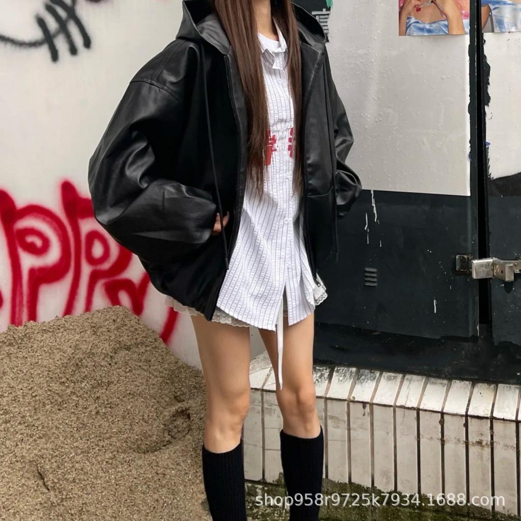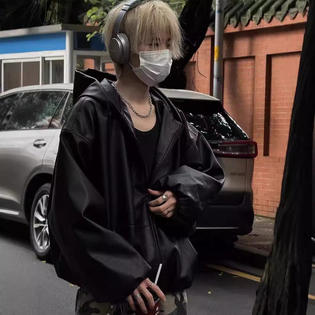 Уличная куртка-ветровка черного цвета для мужчин и женщин, чистый крой, повседневная, свободная, на молнии, с капюшоном, оверсайз