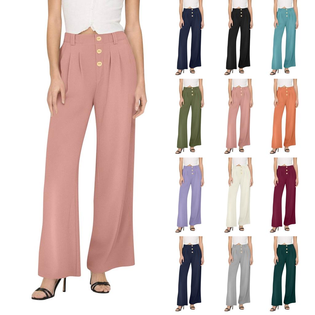 Женские повседневные прямые брюки однотонные с высокой талией и карманами