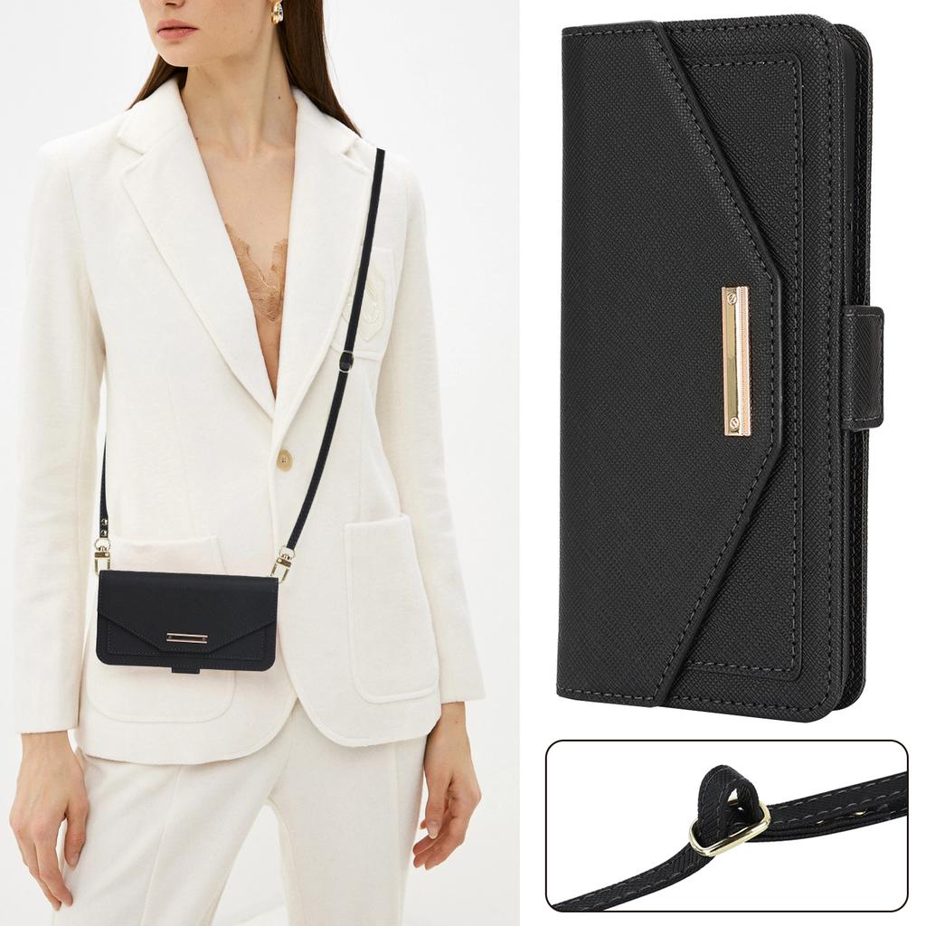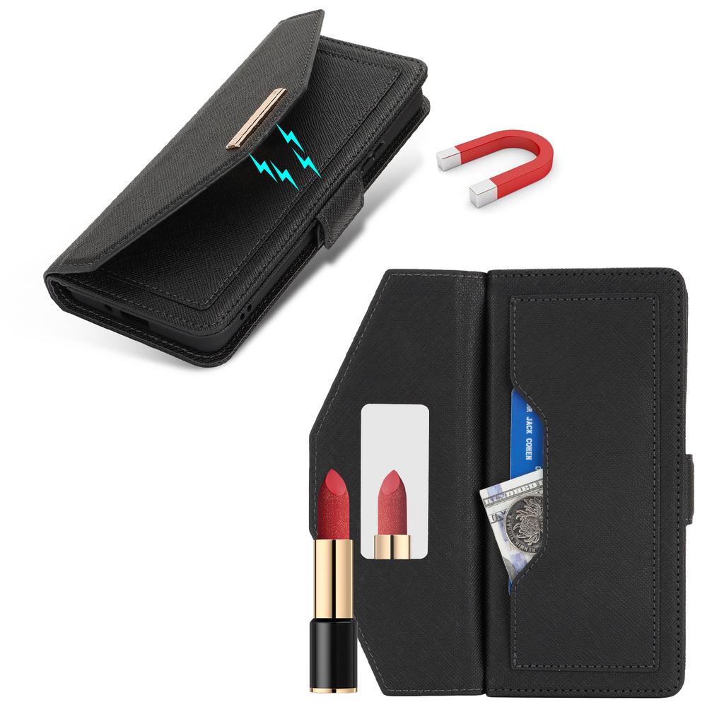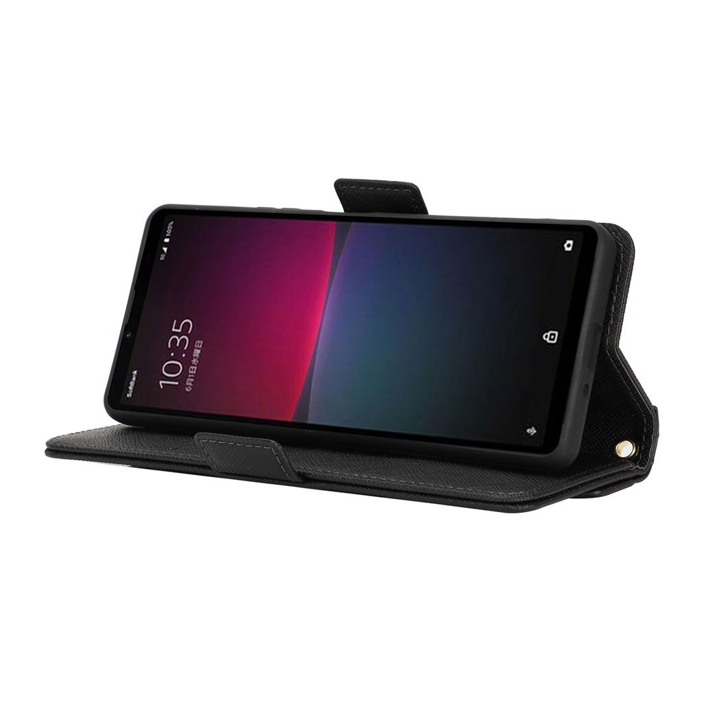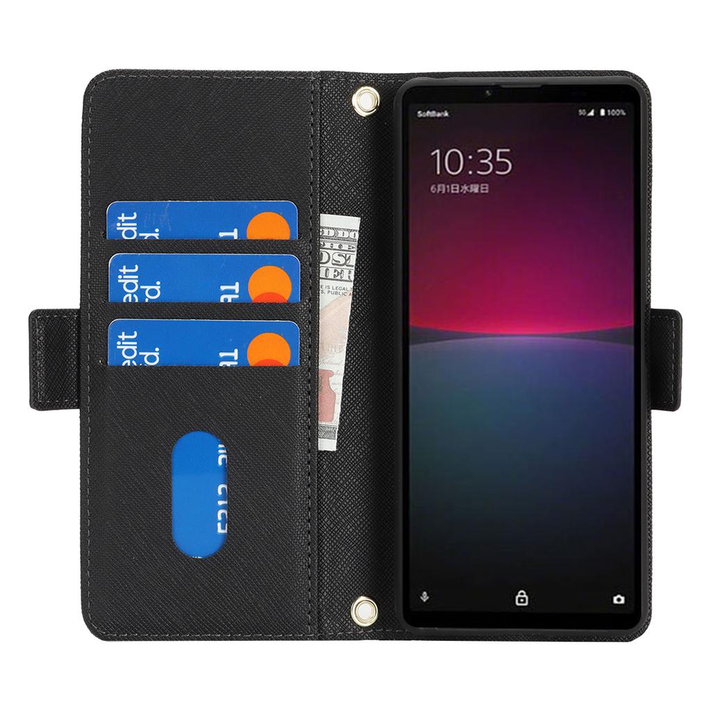 Чехол-подставка для Sony Xperia 10 IV 5G, кошелек из искусственной кожи с текстурой крест-накрест, чехол для телефона с плечевым ремнем/зеркальцем для макияжа