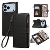 For iPhone 17 Pro Max Case Multi Card Slots Zipper Leather Phone Cover with Wrist Strap
