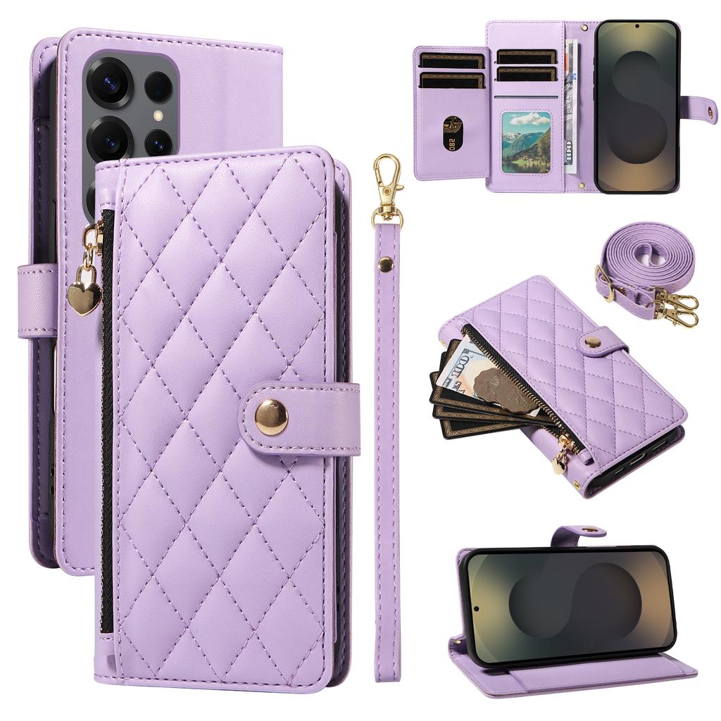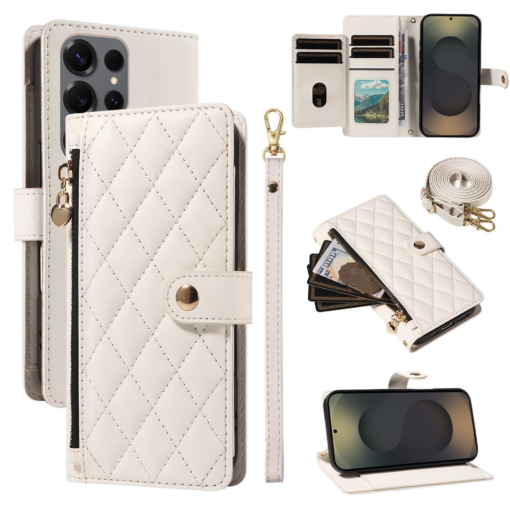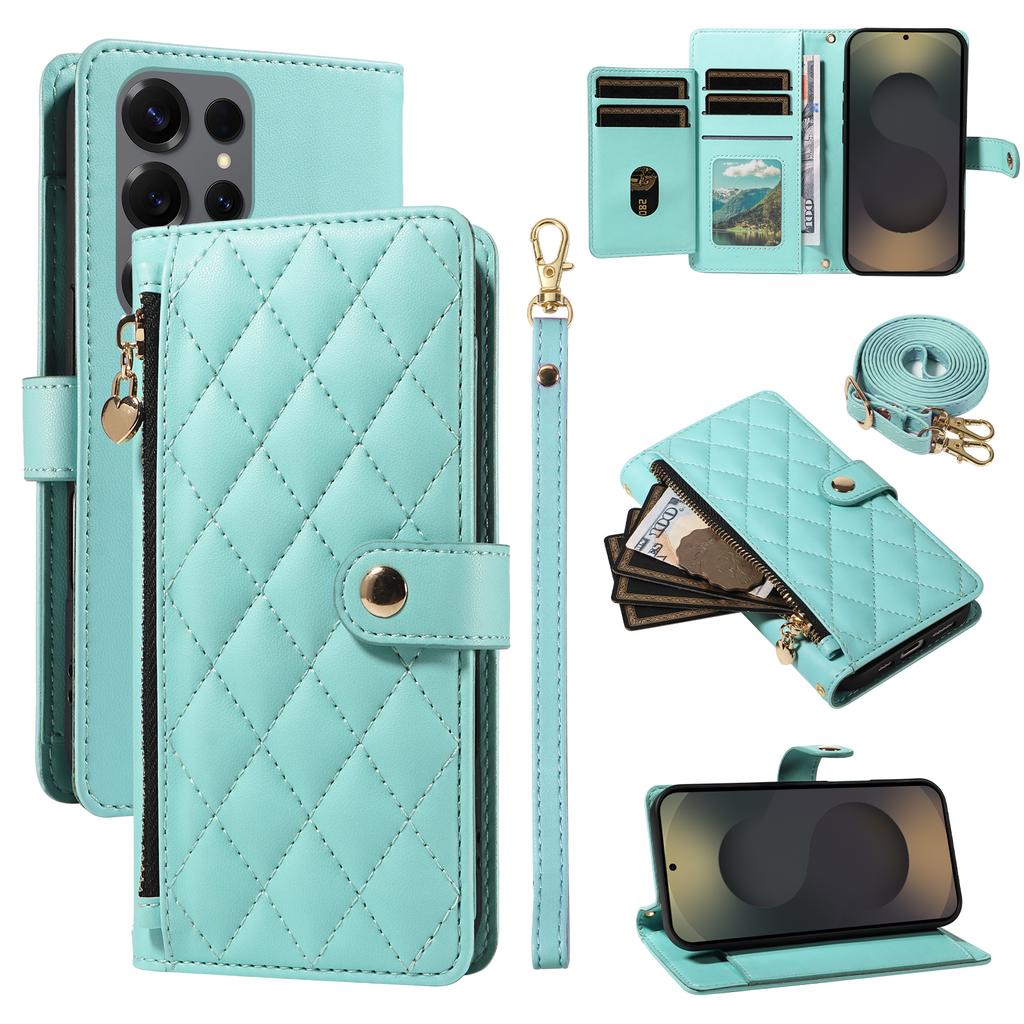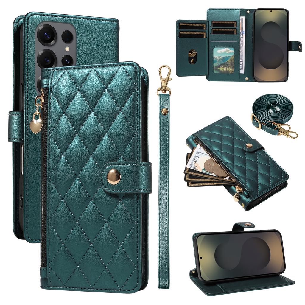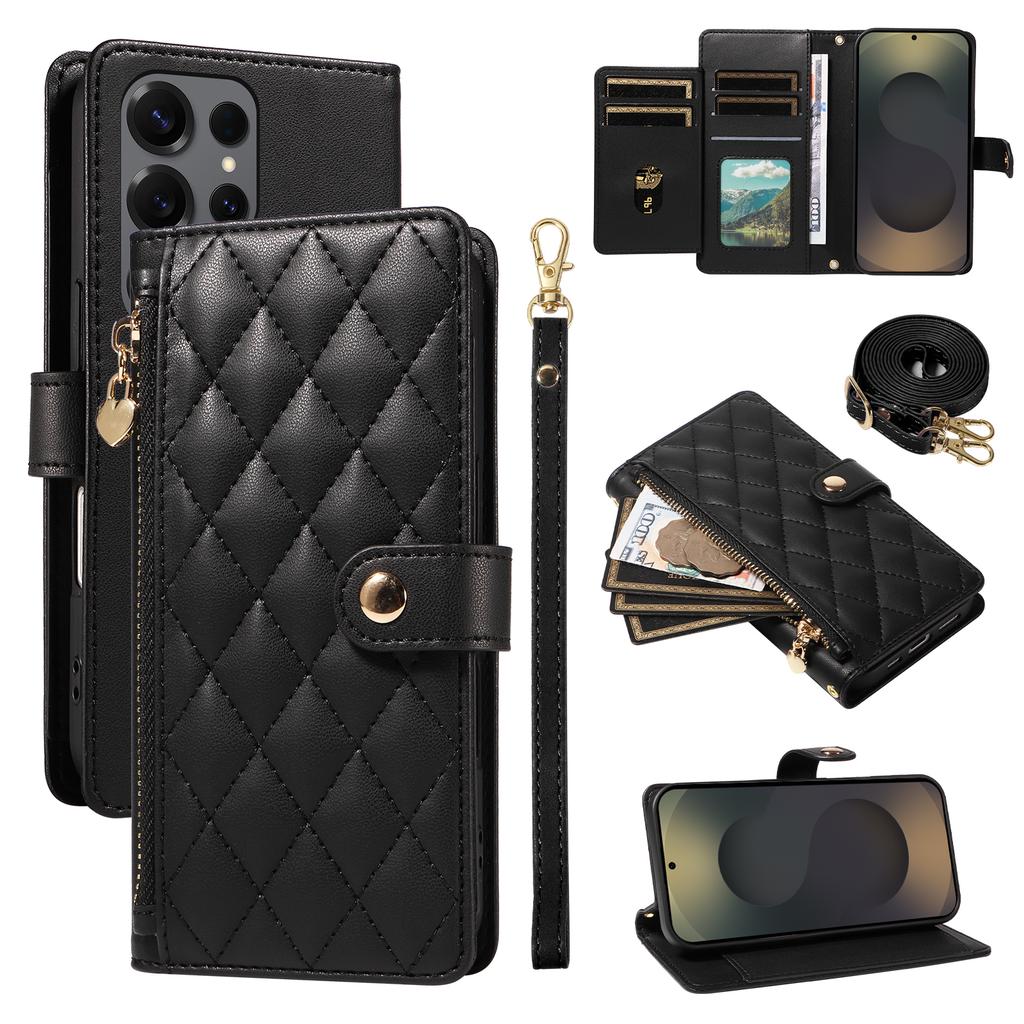 Для Samsung Galaxy S25 Ultra Чехол-кошелек с ремешками, Ромбовидный кожаный чехол-подставка для телефона