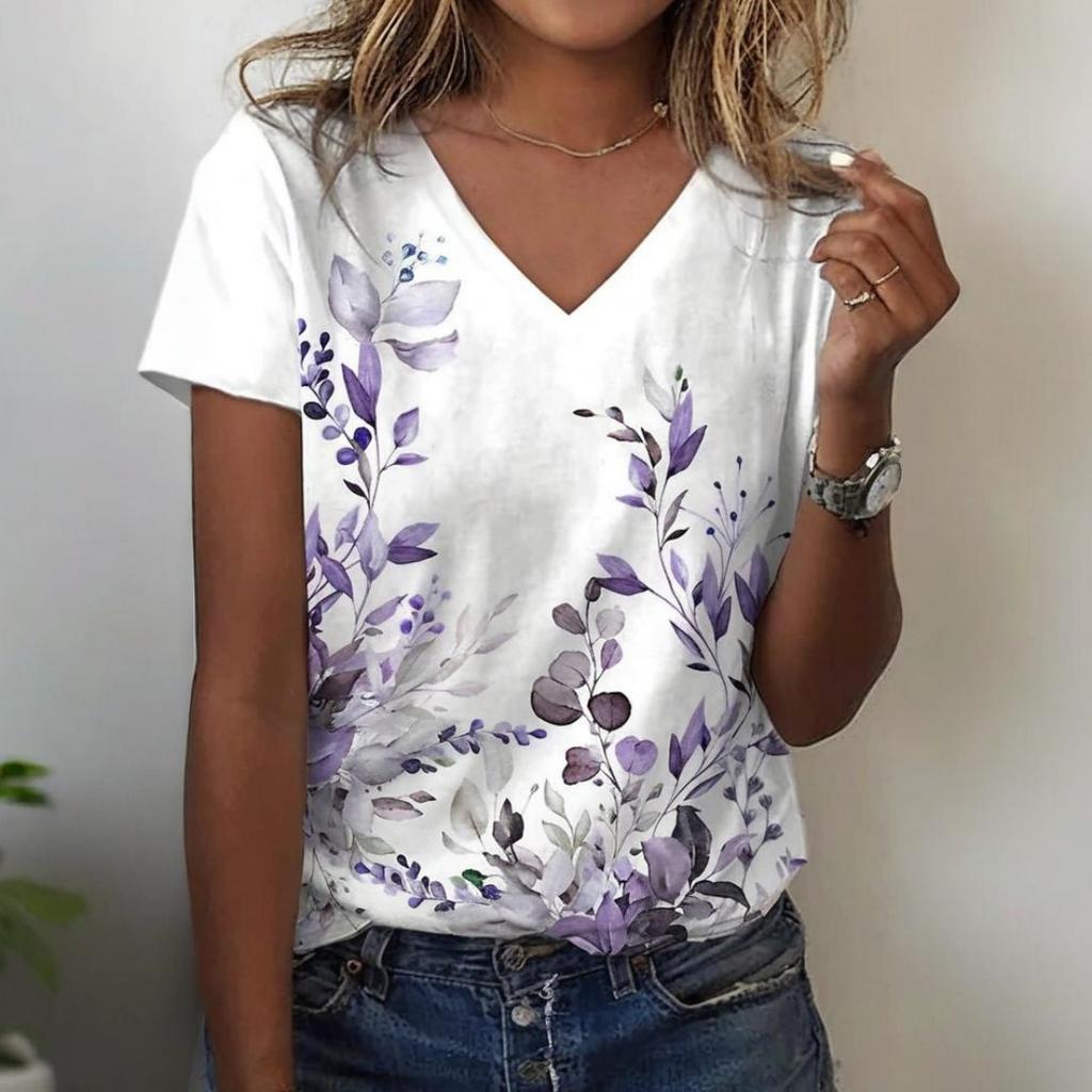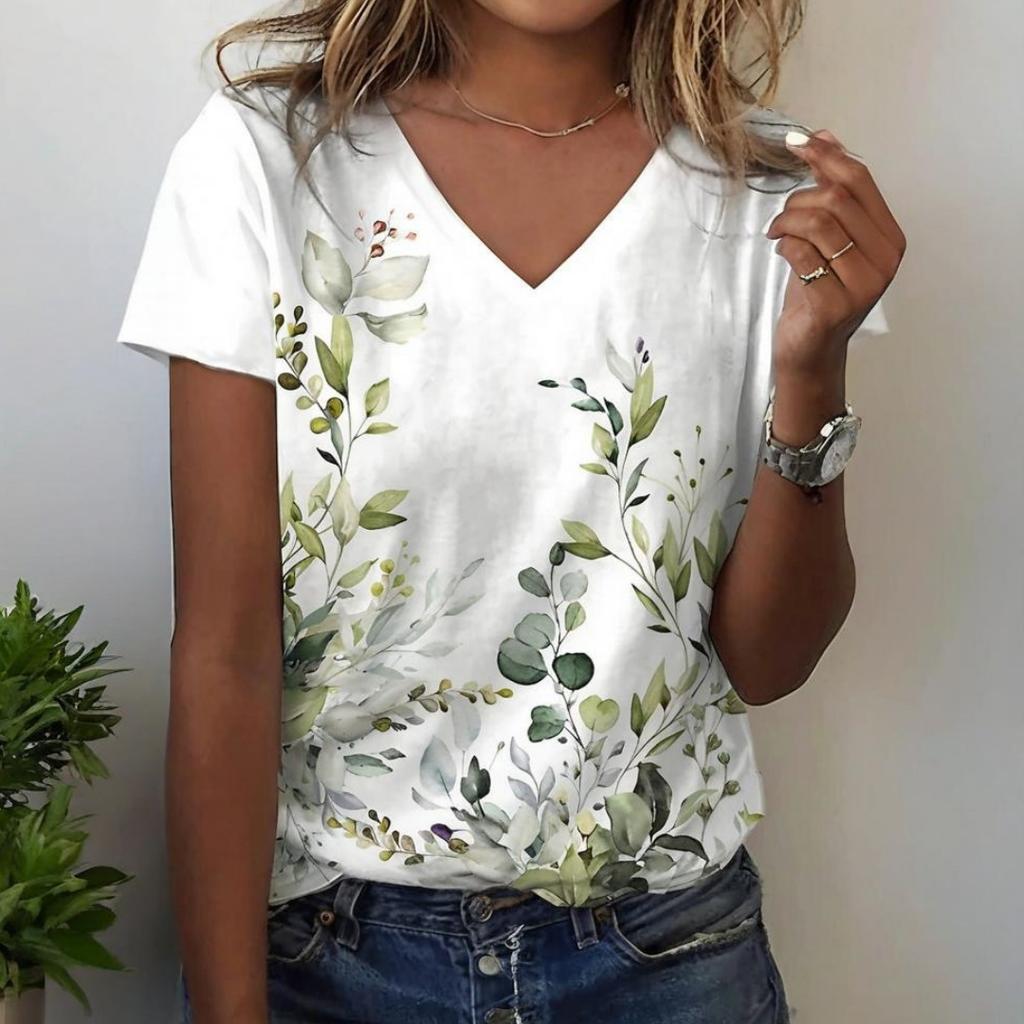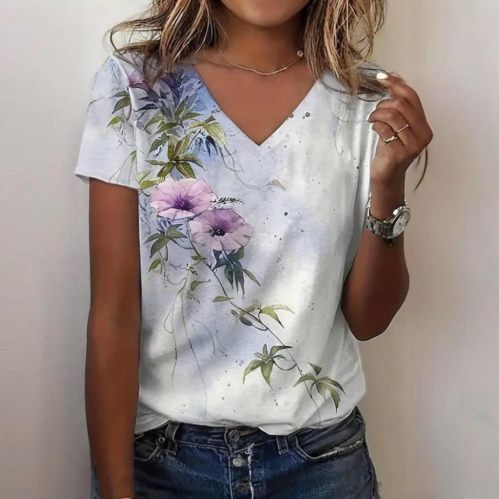 Женская футболка Летняя Повседневная Уличная V-образный вырез Женская С коротким рукавом С принтом Всегда в тренде Свободная и Удобная Короткий стиль