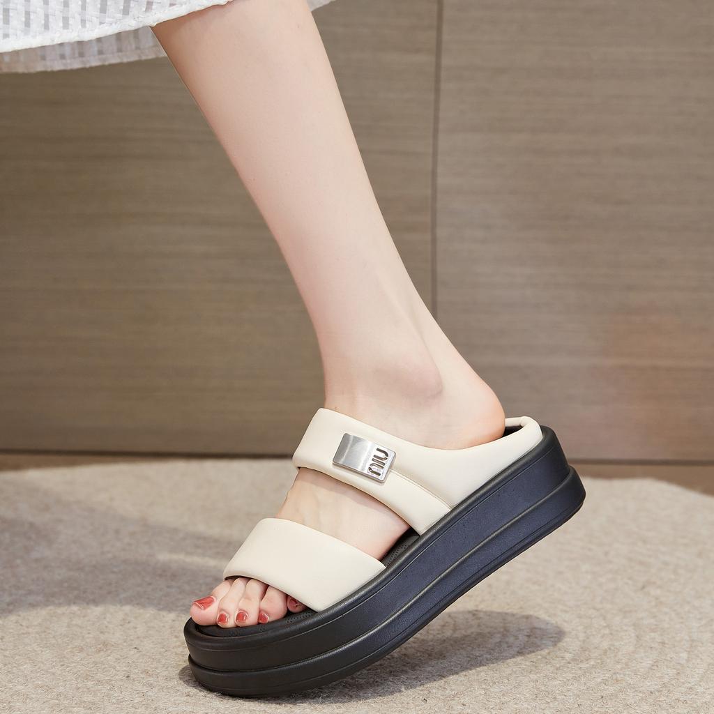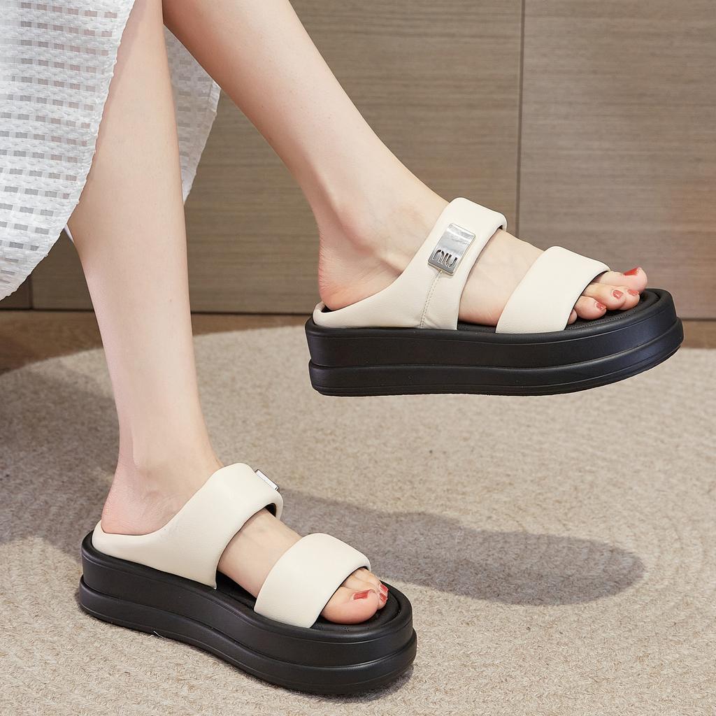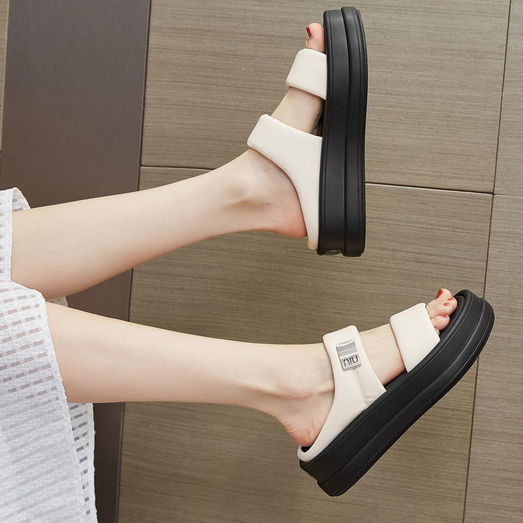 Сандалии лето новые уличные тапочки женские толстая подошва увеличивают облачные повседневные универсальные спортивные слово крутые тапочки