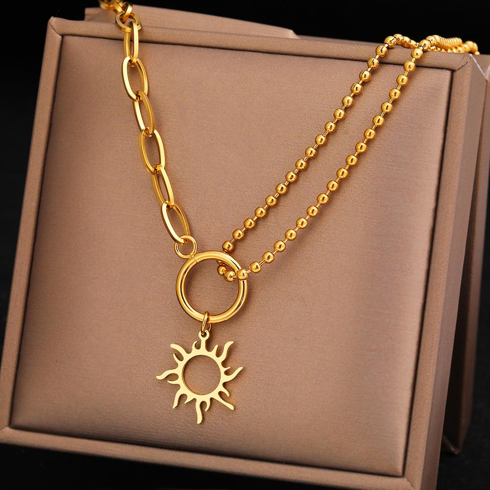 Ожерелья из нержавеющей стали Модные Изящные Нежные Солнечный Тотем Мода Микс Матч Циркониевые Цепочки Подвески Ожерелье Для Женщин Циркониевый Подарок