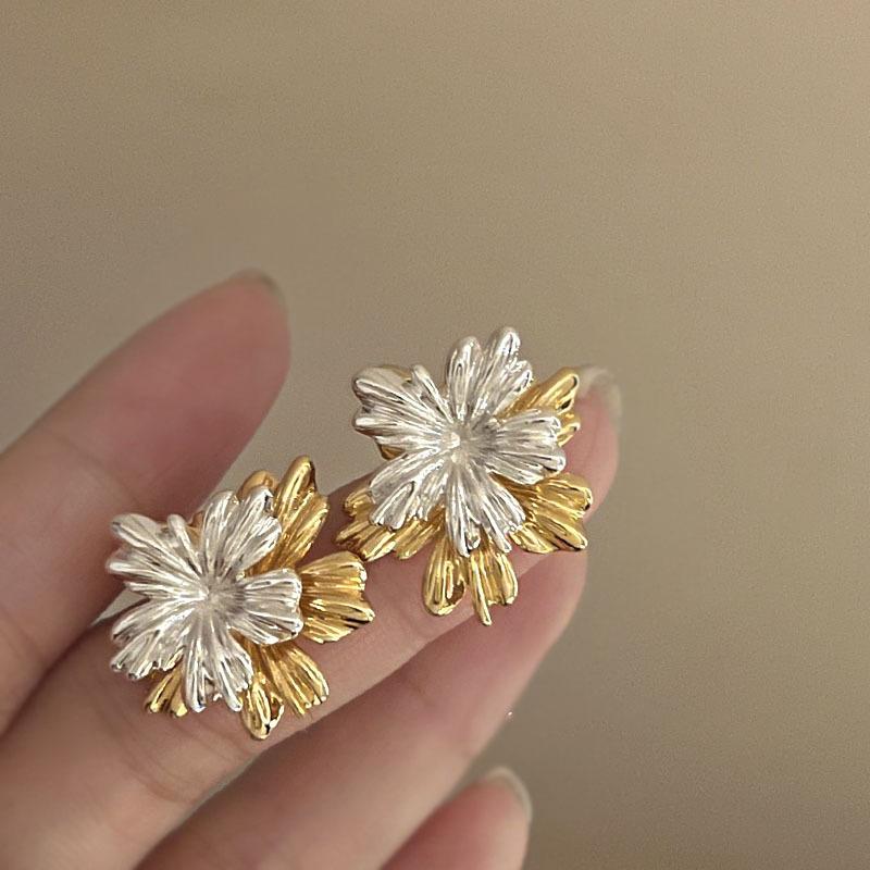 Преувеличенные металлические цветы, серьги-гвоздики с цирконом для женщин, модные серьги темпераментного дизайна, полые круглые золотого цвета, подарки для вечеринок с цирконом