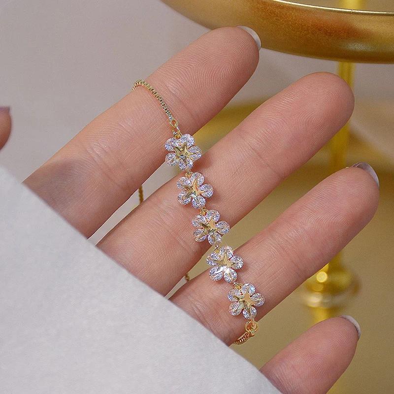 Корея Горячая Мода Циркон 14K Позолота Настоящим Золотом Медь Инкрустированный Циркон AAA Браслет Цветок Эластичный Регулируемый Женский Браслет