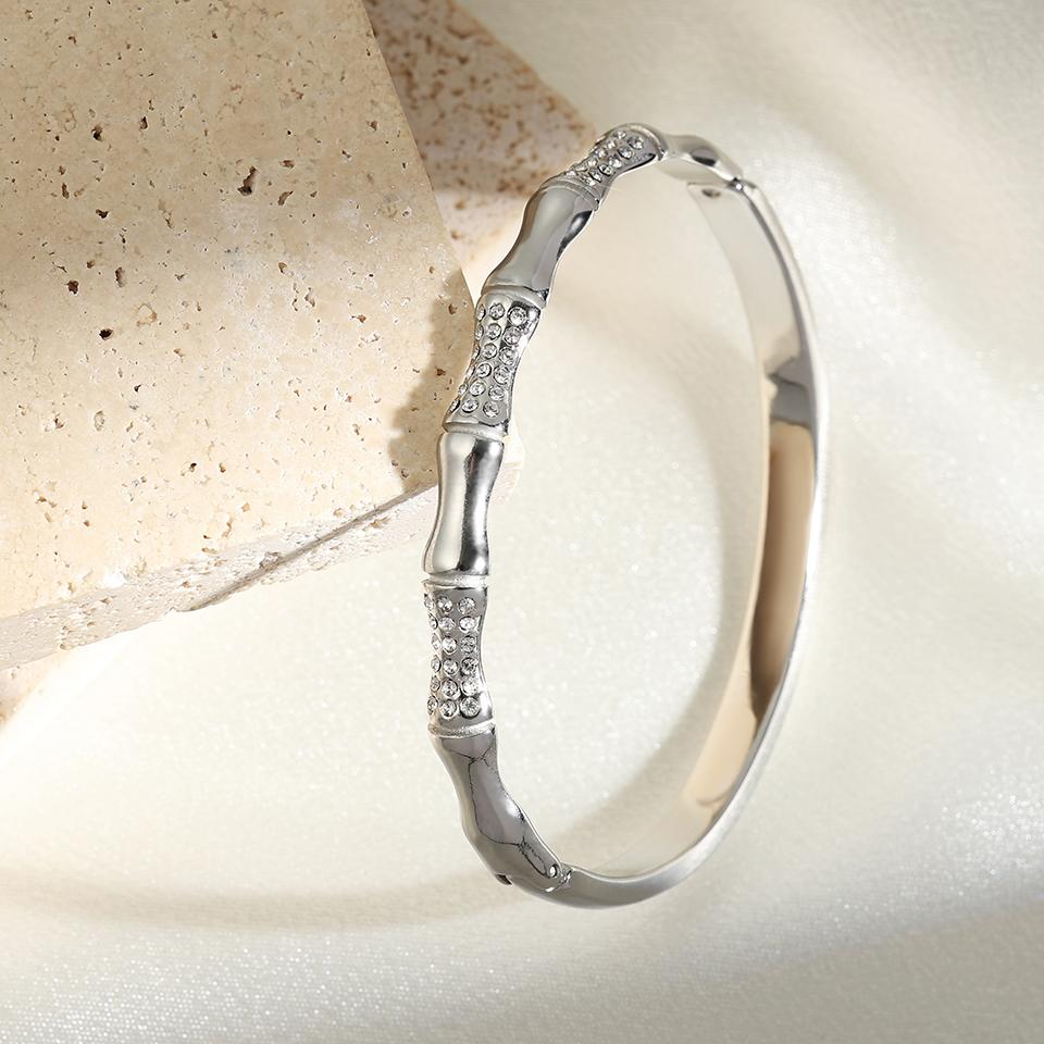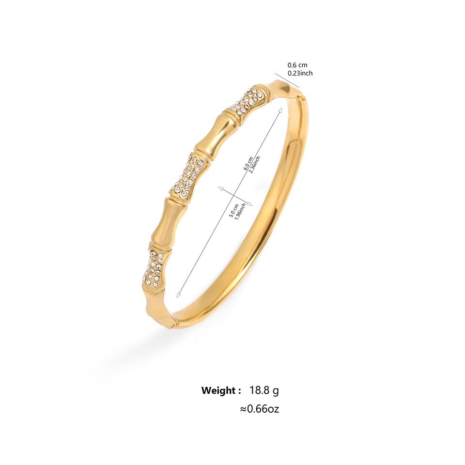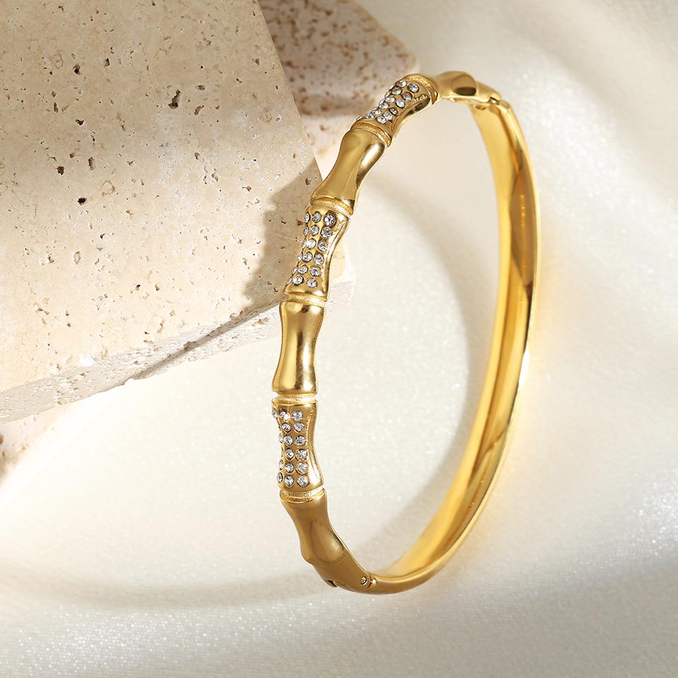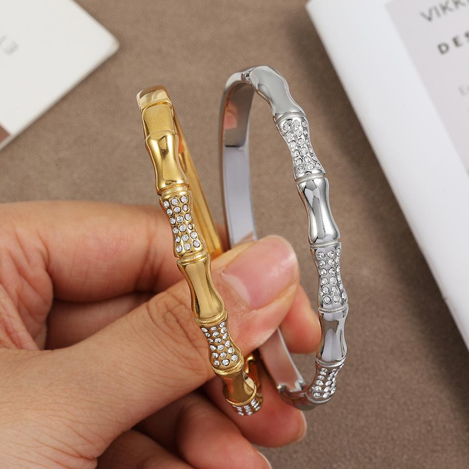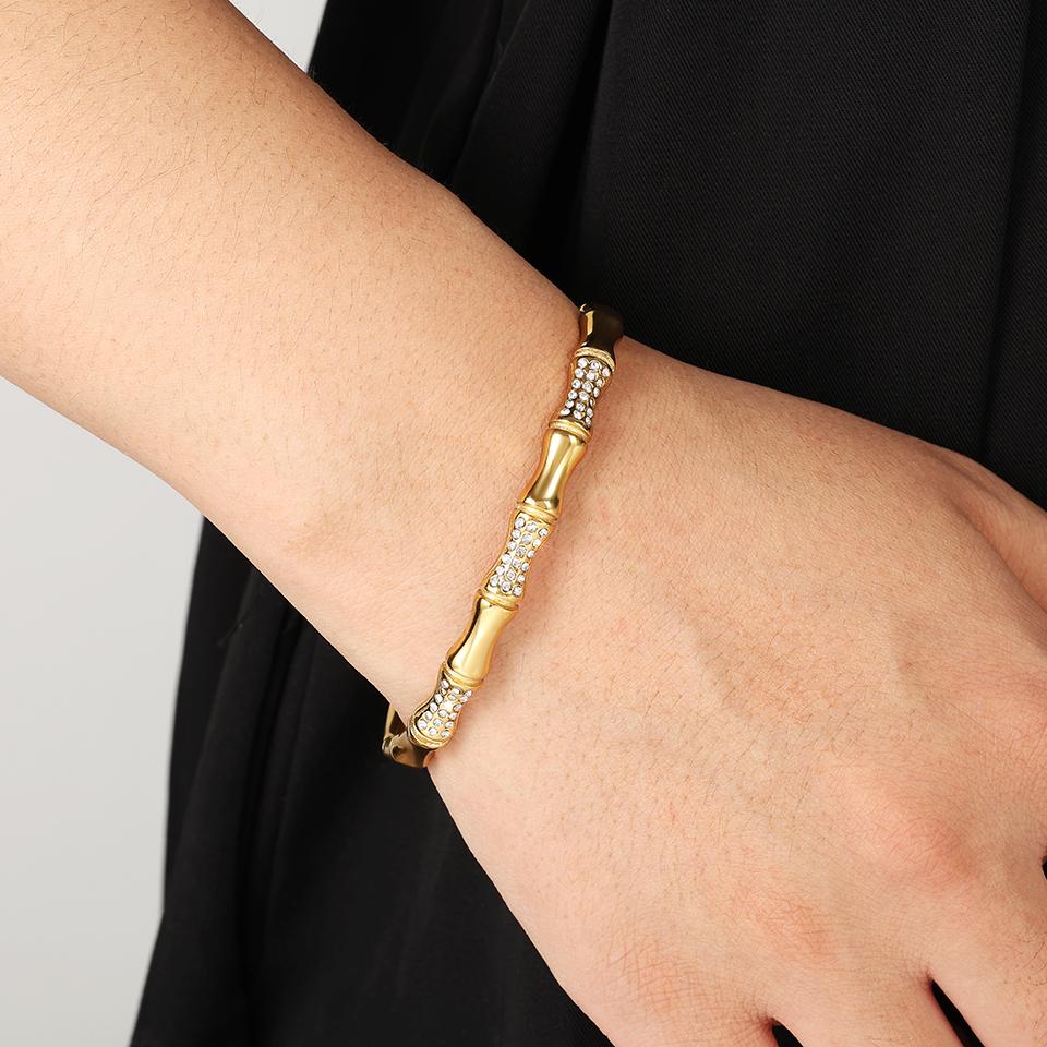 Htpwe Браслет из нержавеющей стали с костью, бриллиантом и бамбуком для женщин, золото 18 карат, парный, праздничный подарок, не тускнеющий браслет, для вечеринок и на каждый день, циркон