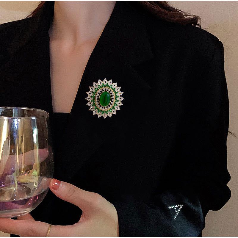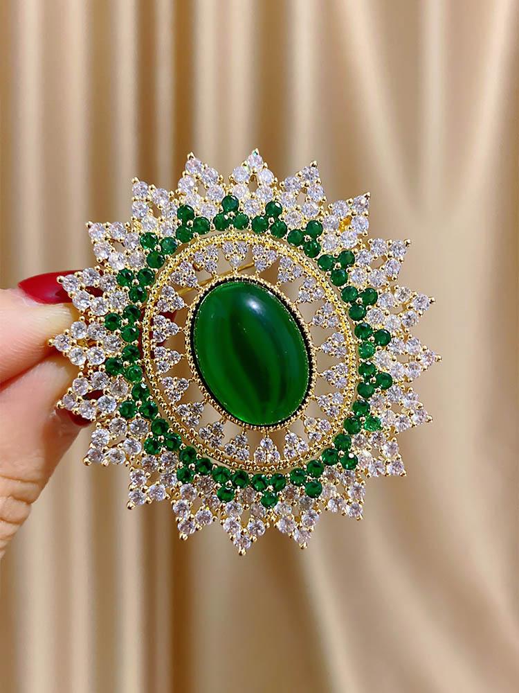 SUYU Роскошная брошь с кубическим цирконием, дворцовый стиль, изумрудная, высококлассная и элегантная женская булавка, сочетающаяся с пиджаком-чонсам