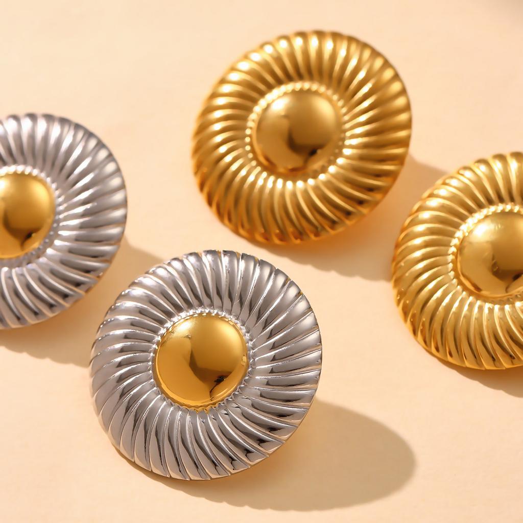 Серьги-пусеты Nivora Stripe с металлической текстурой, в форме шляпы, из полированной нержавеющей стали, для женщин, предотвращающие аллергию, для повседневной носки, с цирконом