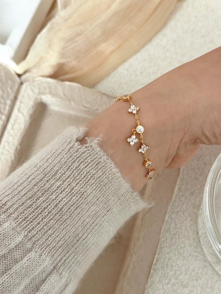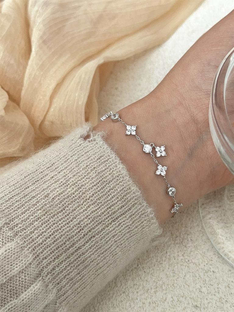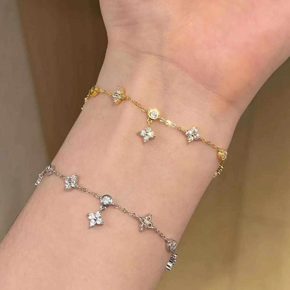 ZAKOL Блестящий циркон, инкрустированный, браслет-цепочка с четырехлистными цветами для женщин, нишевый простой дизайн, наслоенные браслеты, аксессуары для вечеринок