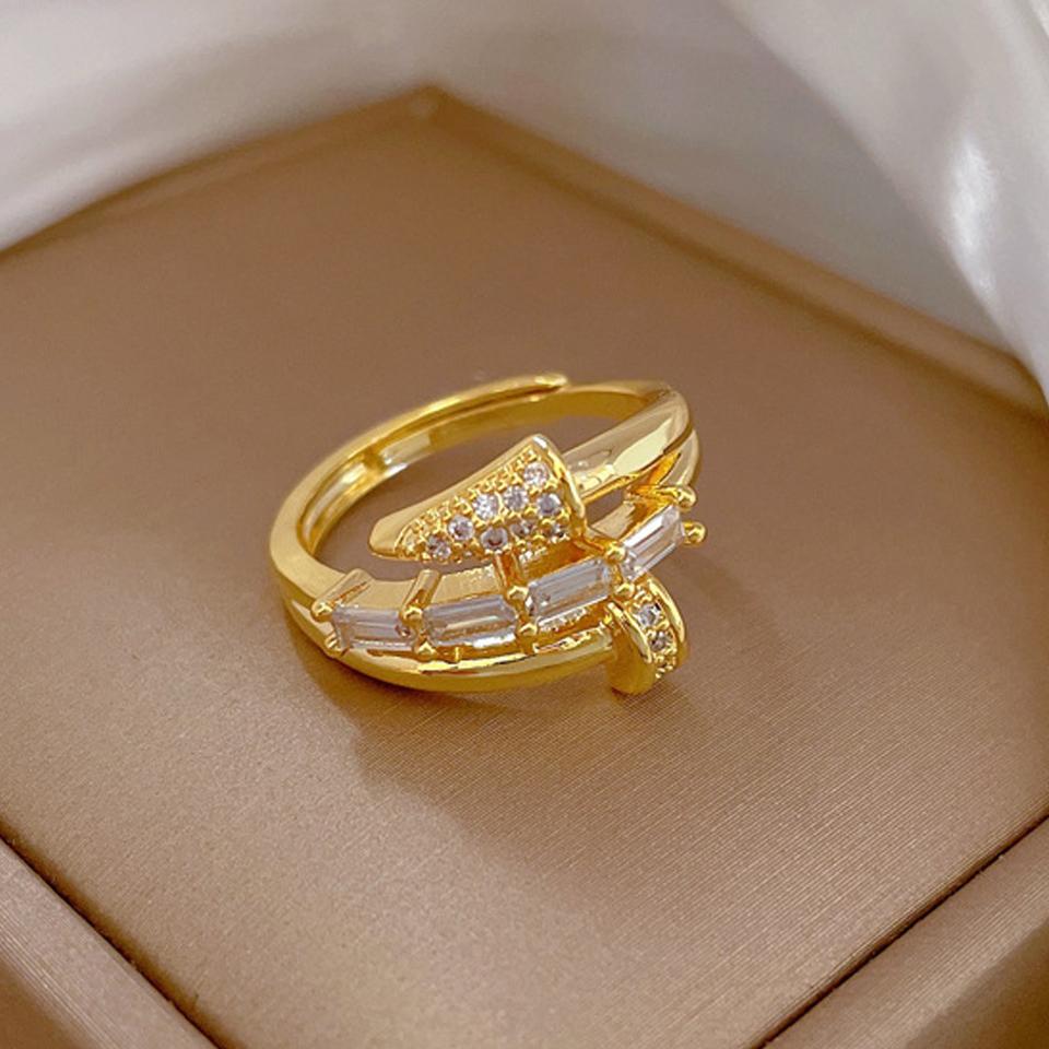ZAKOL Корейская Мода Трехслойное Блестящее Циркониевое Кольцо Открытое на Ноготь для Женщин Помолвка Свадьба Вечеринка Циркон Подарок