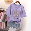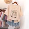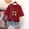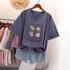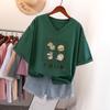 Женская футболка с коротким рукавом, большого размера, свободная и стройнящая, топ с V-образным вырезом с принтом