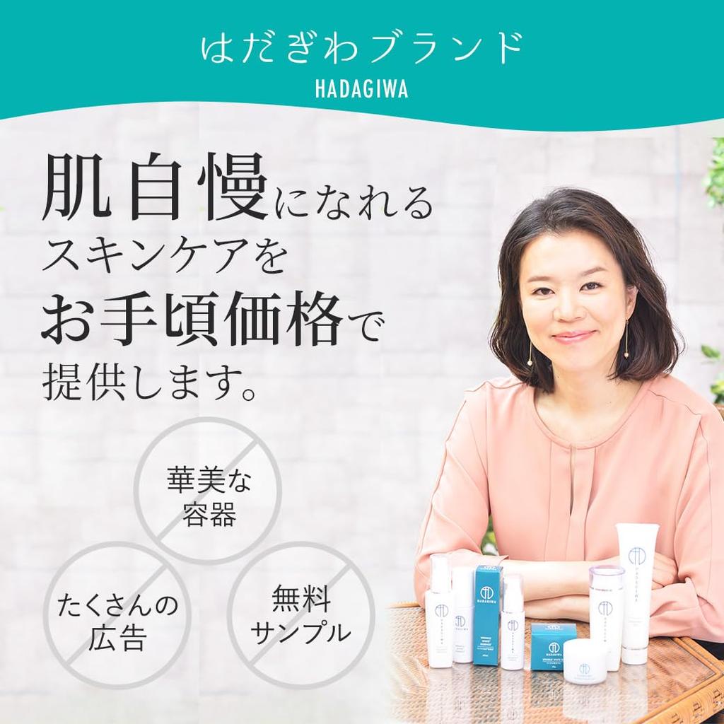 [Постоянное использование Hadagiwa подарит вам красивую кожу] В категории косметики, пожалуйста, доверьтесь [Серии Hadagiwa]. Помимо ухода за кожей, сначала полностью пересмотрите свой образ жизни, включая сон, диету и меры защиты от УФ-излучения, такие как использование зонта от солнца.. То, как вы используете косметику, также важно.. Вы используете лосьон после сушки волос феном после ванны? Действия, которые вы совершаете каждый день, могут сушить вашу кожу. Пожалуйста, проверьте количество и использование, и обретите уверенность в голой коже с серией Hadagiwa.