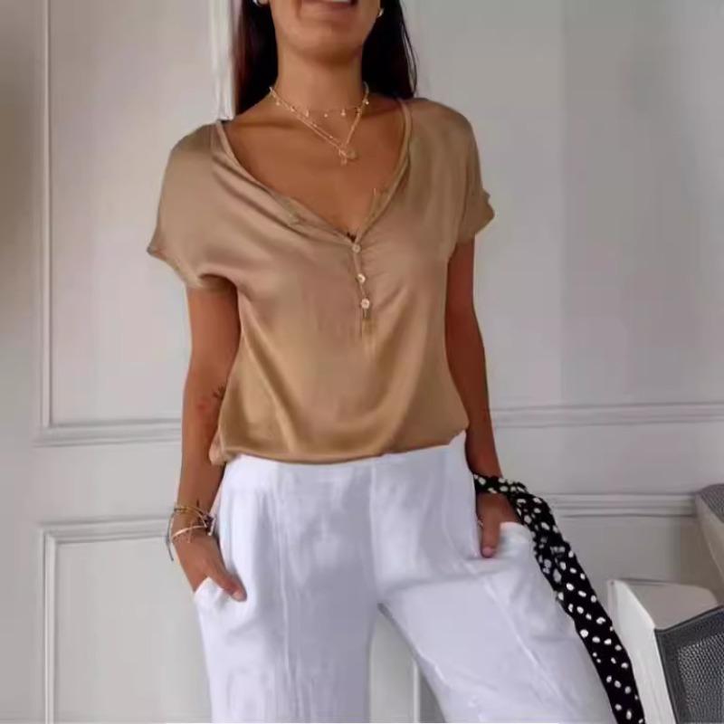 Summer Loose Casual Fashion Simple Commuting Short Sleeved Top