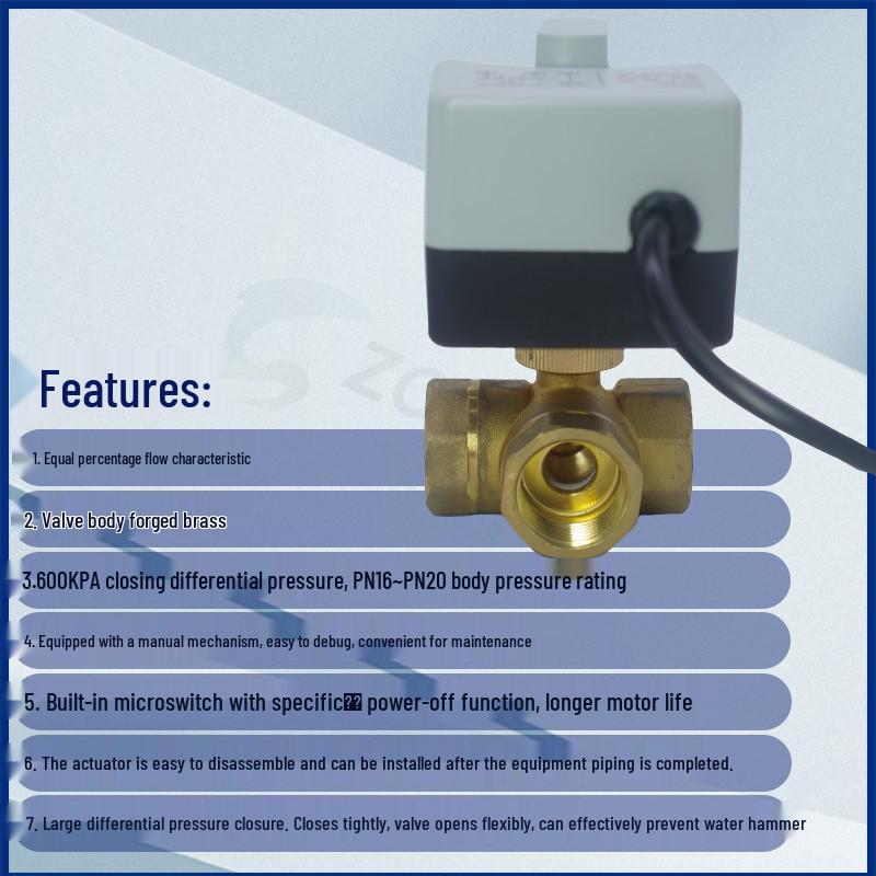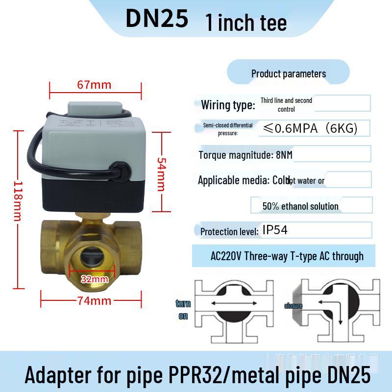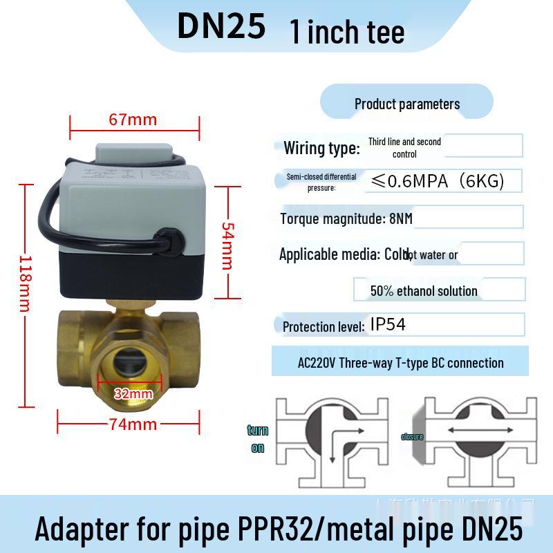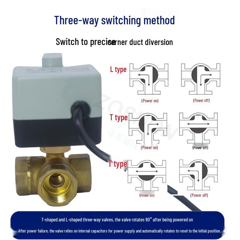 Электрический шаровой кран 220 В переменного тока: 3-ходовой латунный, ручное/автоматическое управление, для систем ОВК/солнечных систем