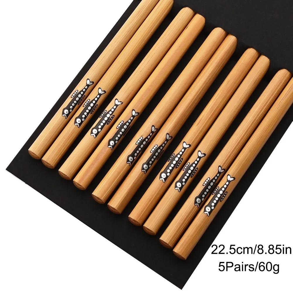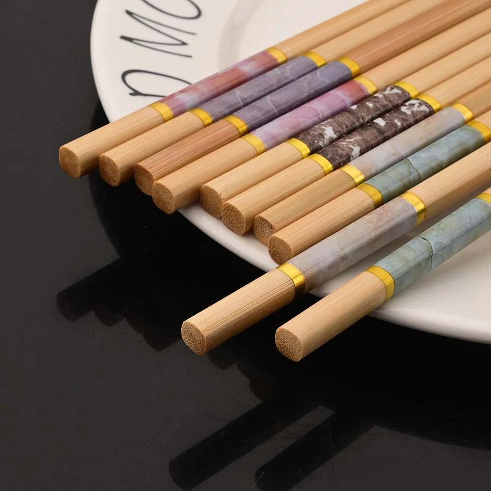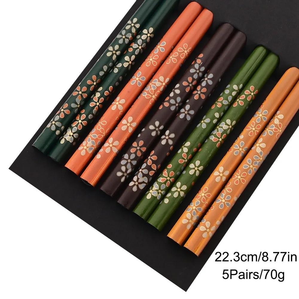 5 пар уникальных и красочных бамбуковых палочек для суши, нескользящая деревянная посуда в стиле ретро, палочки для суши