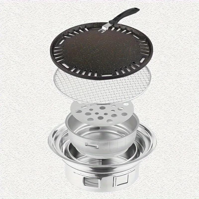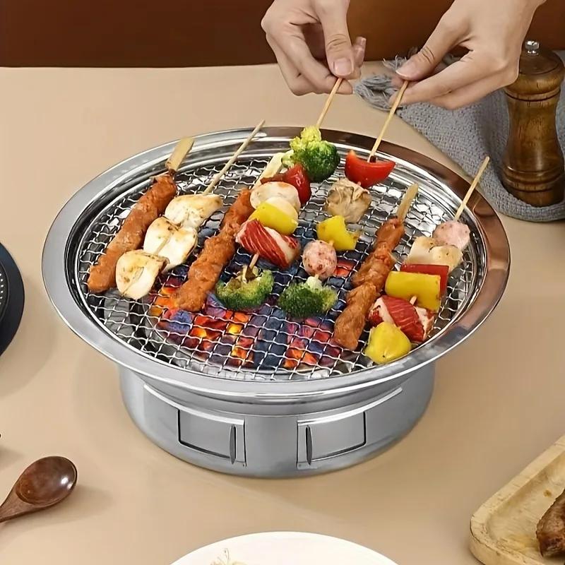 Двухцелевой угольный гриль из нержавеющей стали - Портативный уличный гриль для барбекю и кемпинга, Материал, безопасный для пищевых продуктов
