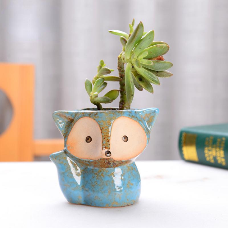 Керамический горшок для растений «Лиса» Микро Милые мини-горшки для суккулентов Маленькие цветочные горшки для бонсай Мультяшный горшок для цветов Домашние цветочные горшки Декоративные