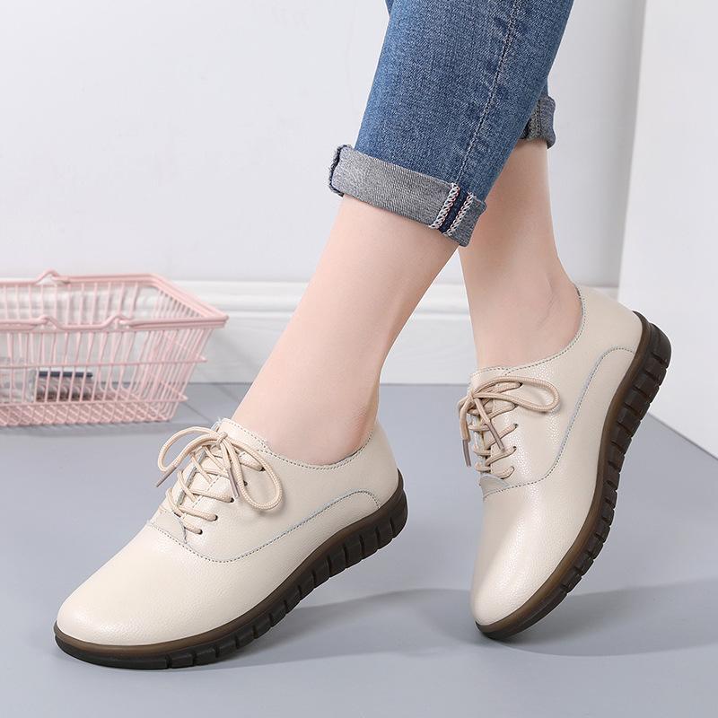 Новая женская обувь из натуральной кожи для весны и осени, удобная мягкая подошва, обувь для мам среднего возраста, повседневная обувь на толстой подошве, однотонная обувь больших размеров