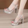 Большой размер 32-43 Туфли на платформе с блочным каблуком Кожа 2025 Лето Босоножки на высоком каблуке Женские Элегантные Серебристые Красные Белые Свадебные туфли