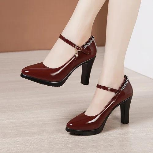 11см Маленький размер 32-43 Лакированная кожа Тонкие высокие каблуки Туфли Кристалл Осень 2025 Туфли-лодочки на низкой платформе Женские для модели Вечернее платье