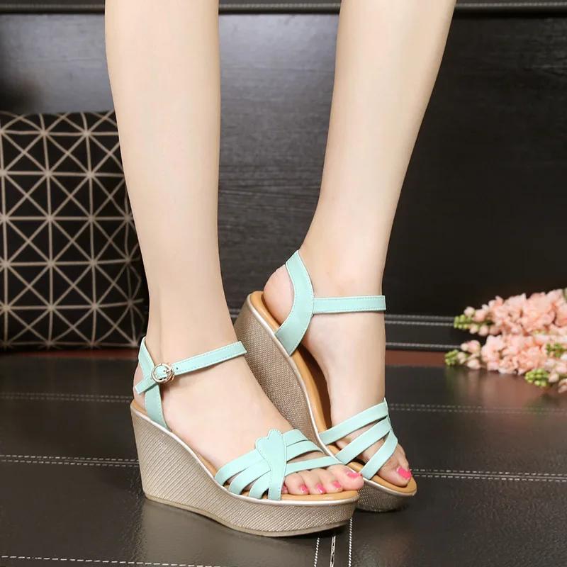 Универсальные Удобные Туфли на Толстой Подошве из Мягкой Кожи Сандалии на Платформе и Танкетке 2025 Лето Женские Сандалии на Высоком Каблуке Офис Мама — купить товар онлайн с бесплатной доставкой по всему миру!