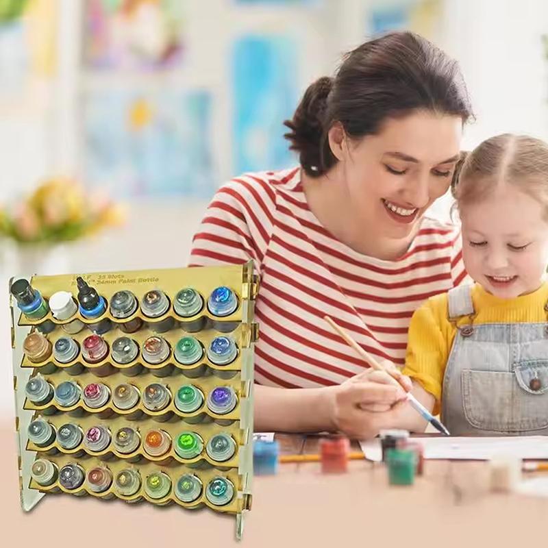 Органайзер для красок с 35 слотами, Стойка для хранения, Подставка-органайзер для красок для хобби, для миниатюрных моделей, для круглых бутылочек 34 мм