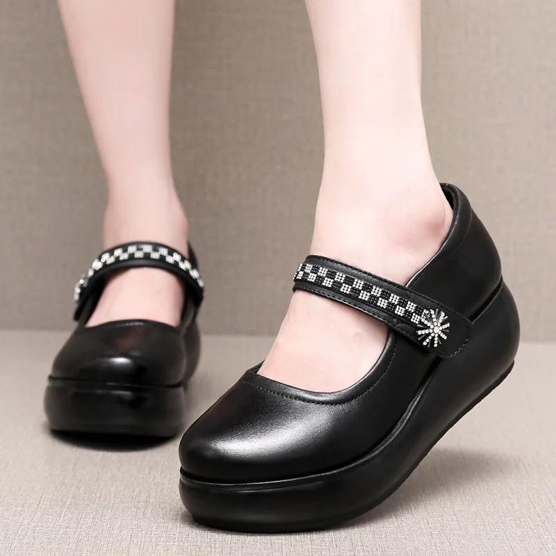 6 см Маленький размер 32-43 Удобные Дышащие Мелкие Мягкая кожа Мэри Джейн Туфли на среднем каблуке 2025 Весна Платформа Танкетка Обувь Мама Работа