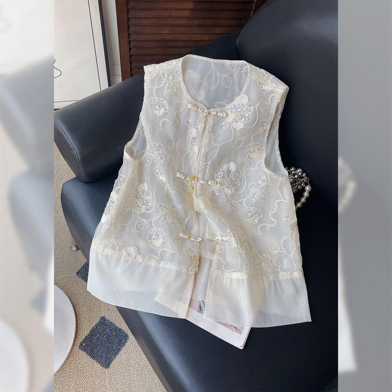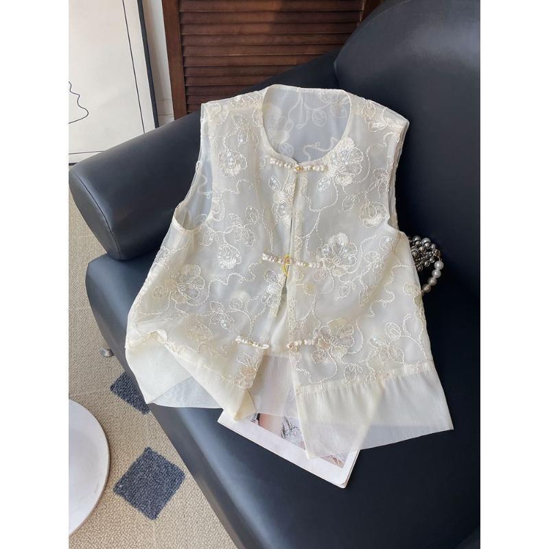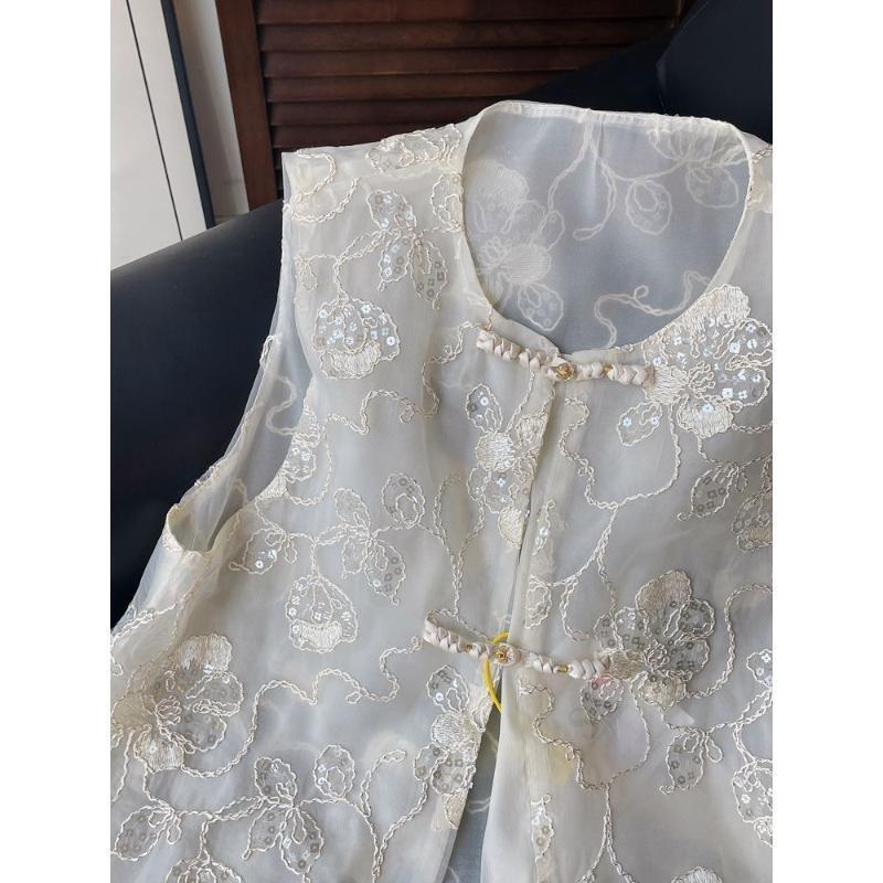 Лето 2025 новый вышитый кружевной жилет жилет женский французский высококлассный топ