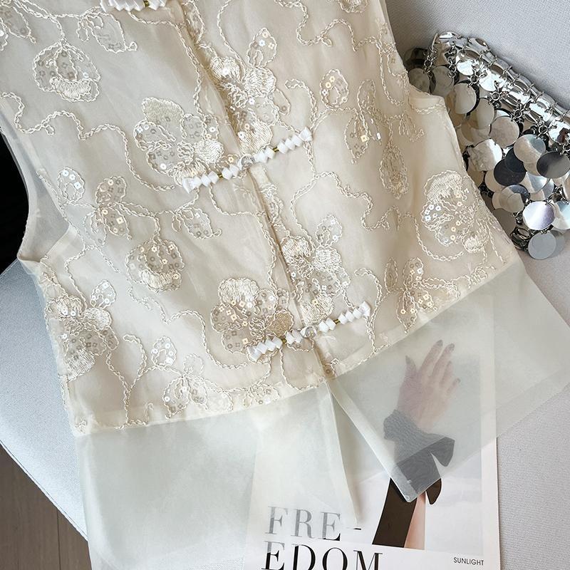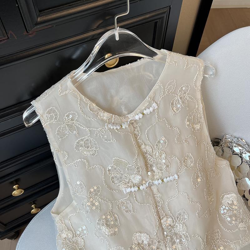 Кнопочный жилет женский 2025 лето высококлассный дизайн нишевый вышитый жилет топ