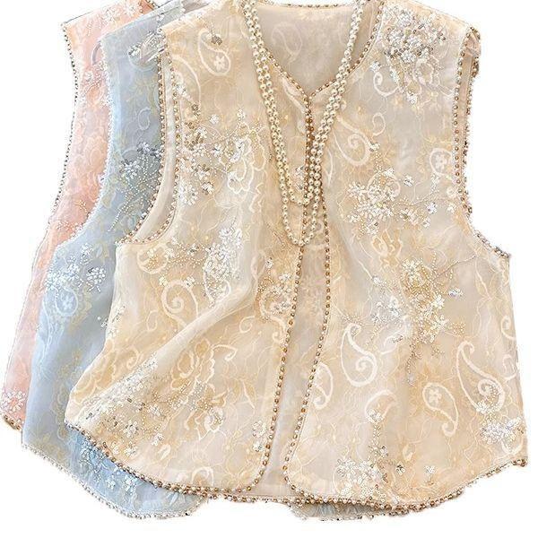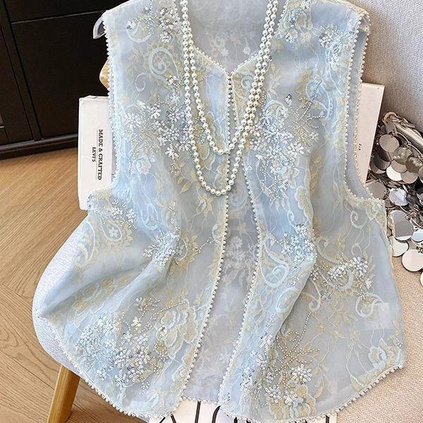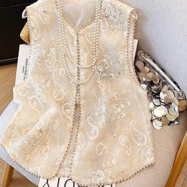 2025 новый стиль летняя вышивка тонкий жилет с пайетками и бисером топ