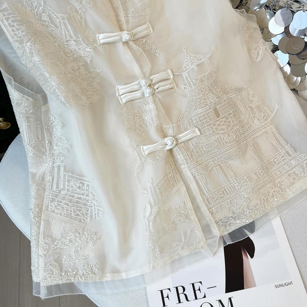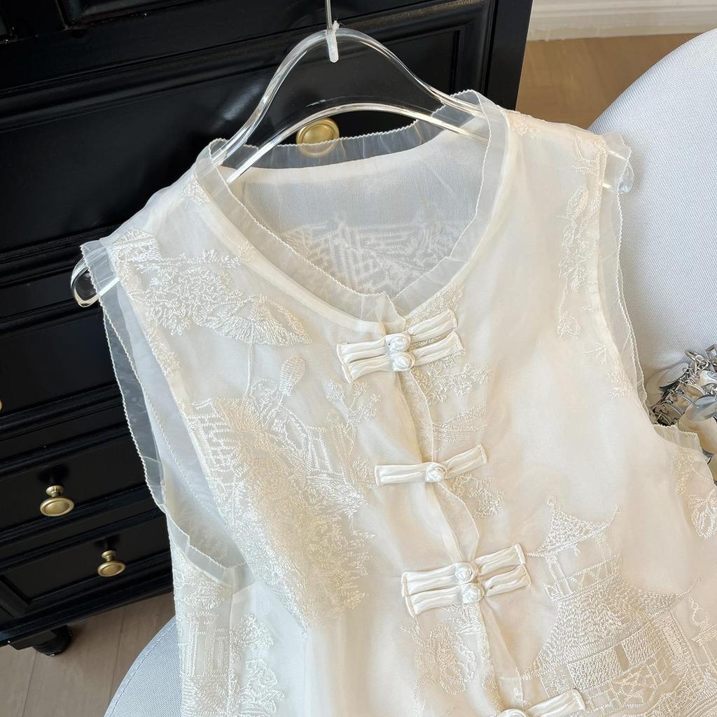 6606 роскошный высококачественный вышитый кружевной жилет женский летний тонкий темпераментный топ-сетка без рукавов