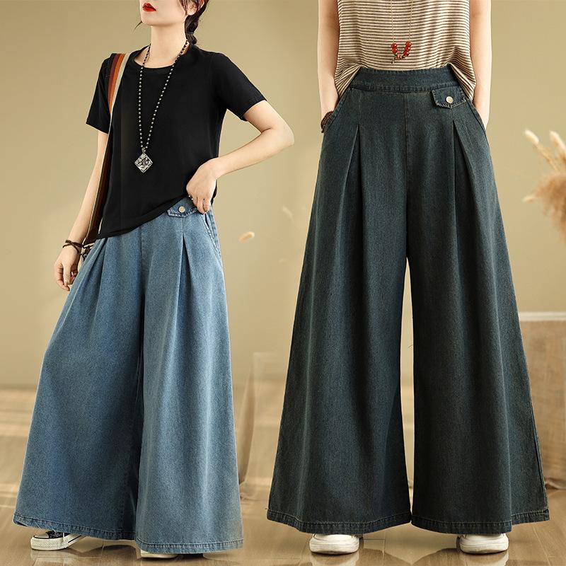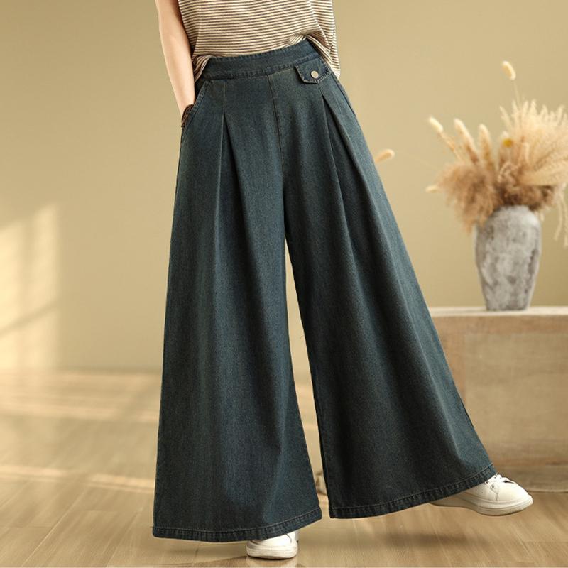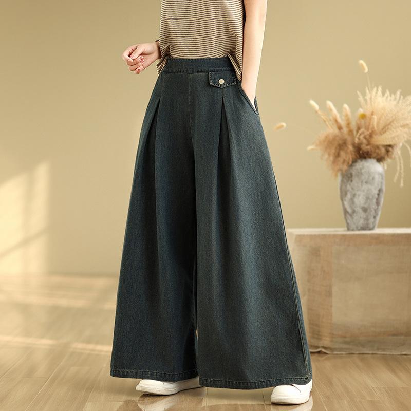 Джинсы из синего денима в винтажном стиле, однотонные, с высокой талией, повседневные, с широкими штанинами, женские, на каждый день, женские повседневные брюки для лета