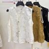 Белый жилет жилет жилет жилет тонкий дышащий жилет женский 2025 лето универсальный воротник-стойка бусины